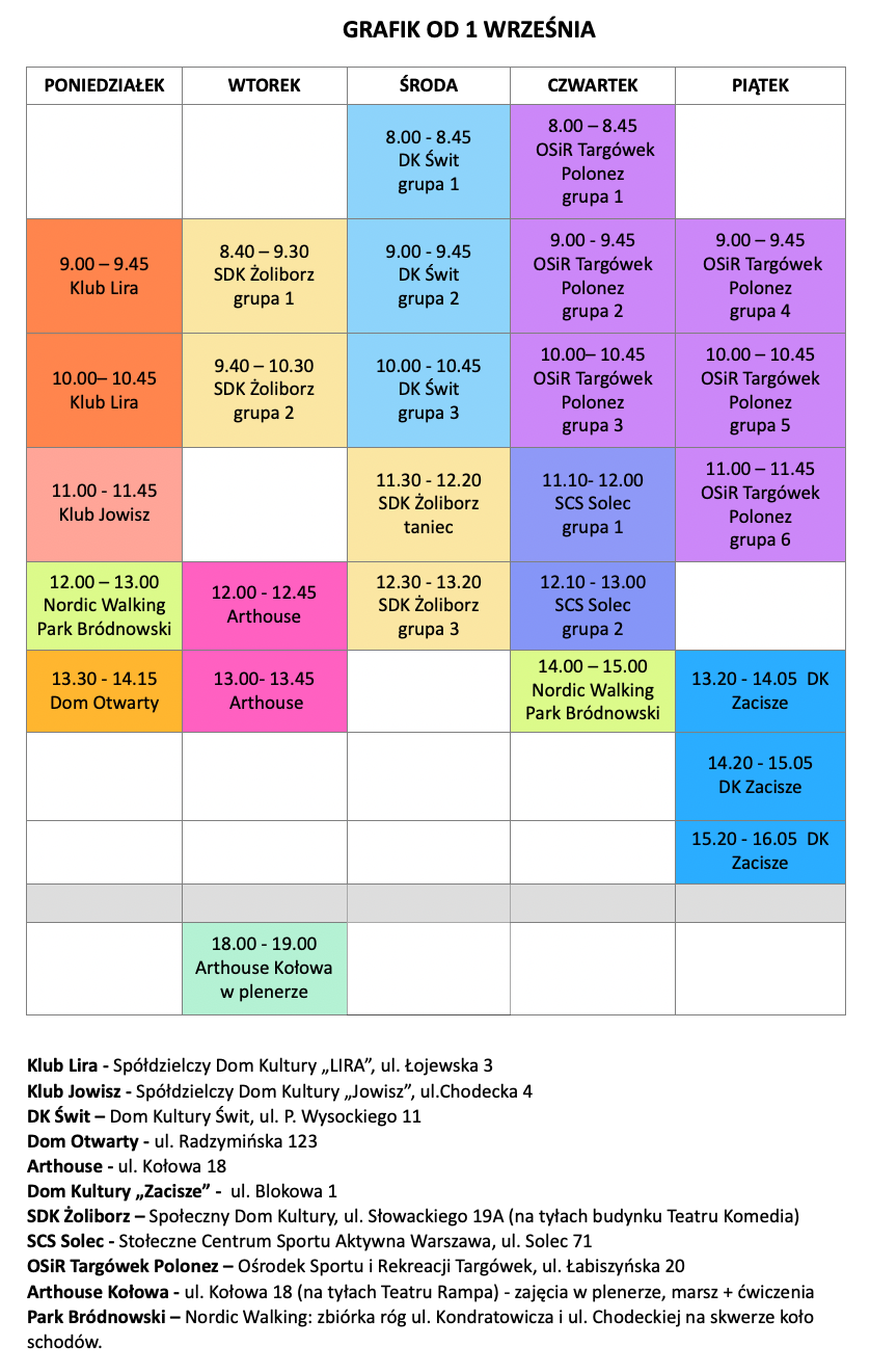Od września ruszają już wszystkie zajęcia z gimnastyki, tańca i Nordic Walking! We wrześniu przypominam że szykuje się też wielka impreza – WARSZAWSKA OLIMPIADA DLA SENIORÓW!