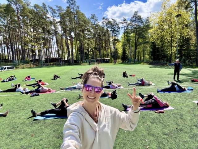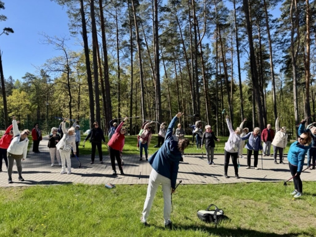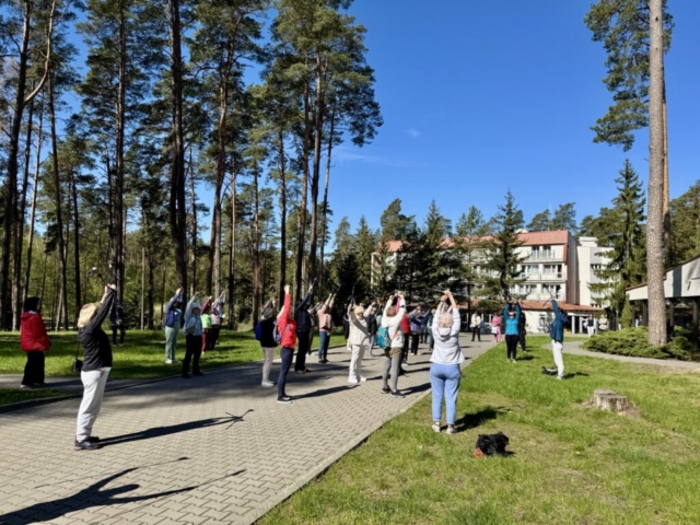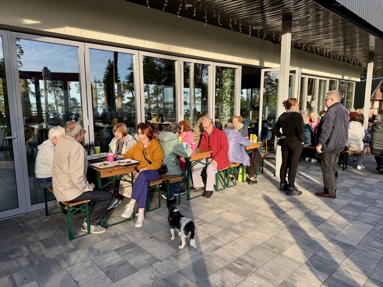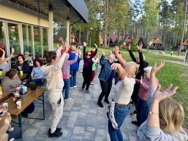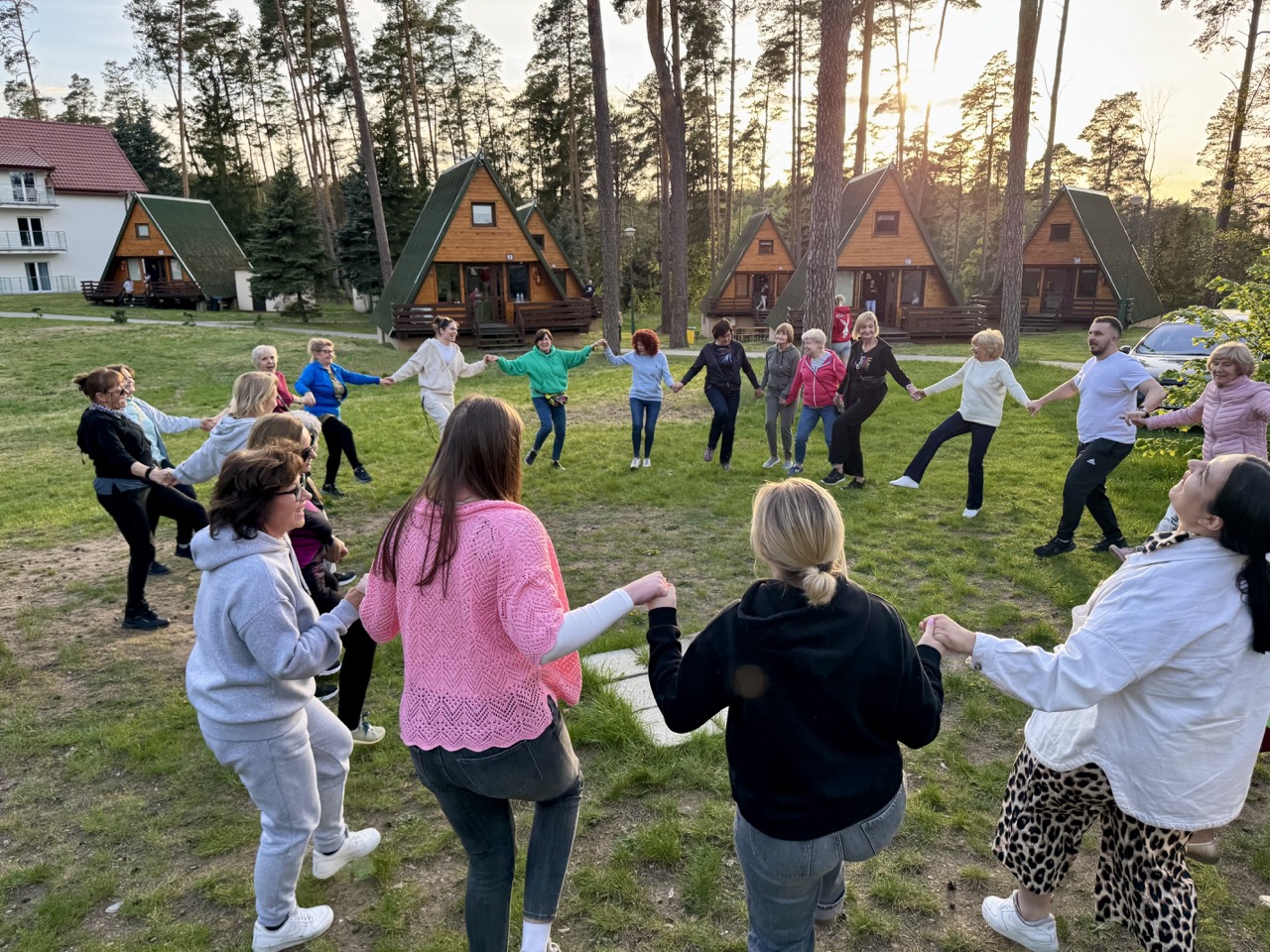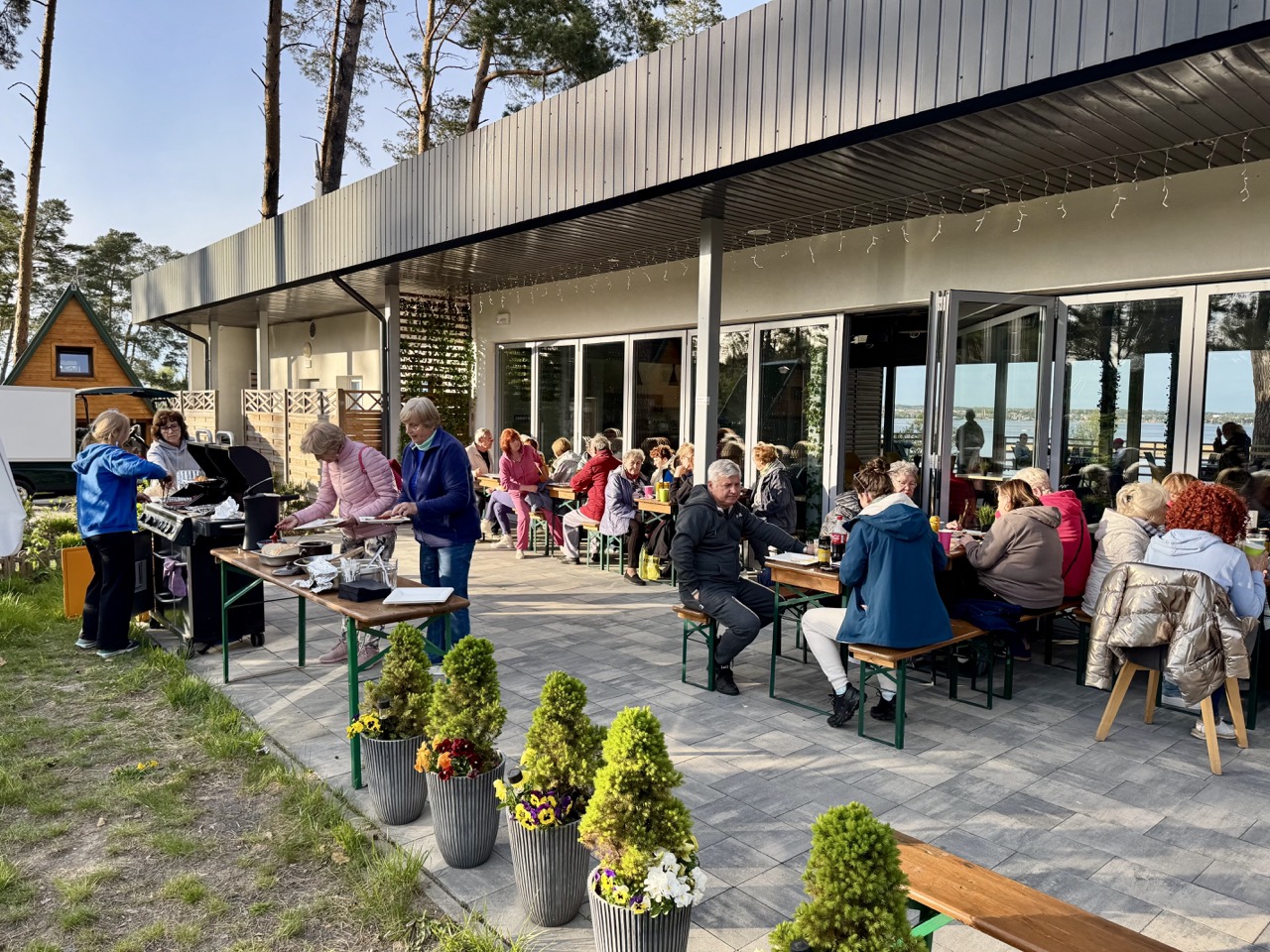 Zaczynając od pogody, która spełniła nasze oczekiwania na 150%, bo dopisała nam perfekcyjnie, a negatywne deszczowe i zimne prognozy się nie sprawdziły, dzięki temu wszystkie aktywności, które były przewidziane na wyjeździe odbywały się na dworzu. Zrobiliśmy sobie 6-km spacer do pobliskiego Giżycka, idąc wzdłuż jeziora a później pięknym szlakiem Św. Brunona. Z kijami poszliśmy także do pięknego mazurskiego lasu. Gimnastyki oczywiście także odbywały się na dworzu. Parafrazując klasyka: „Mazury! Tu się oddycha!”.