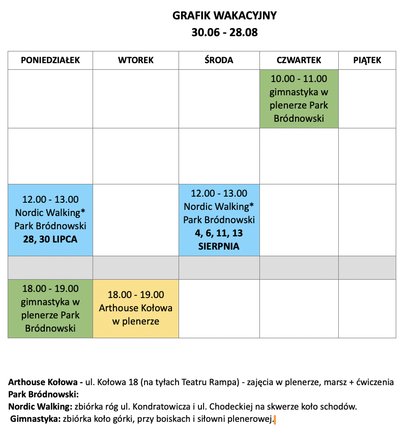 • W każdy poniedziałek o godz. 18.00 oraz we czwartek o godz. 10.00 widzimy się w Parku Bródnowskim – należy wziąć ze sobą matę.