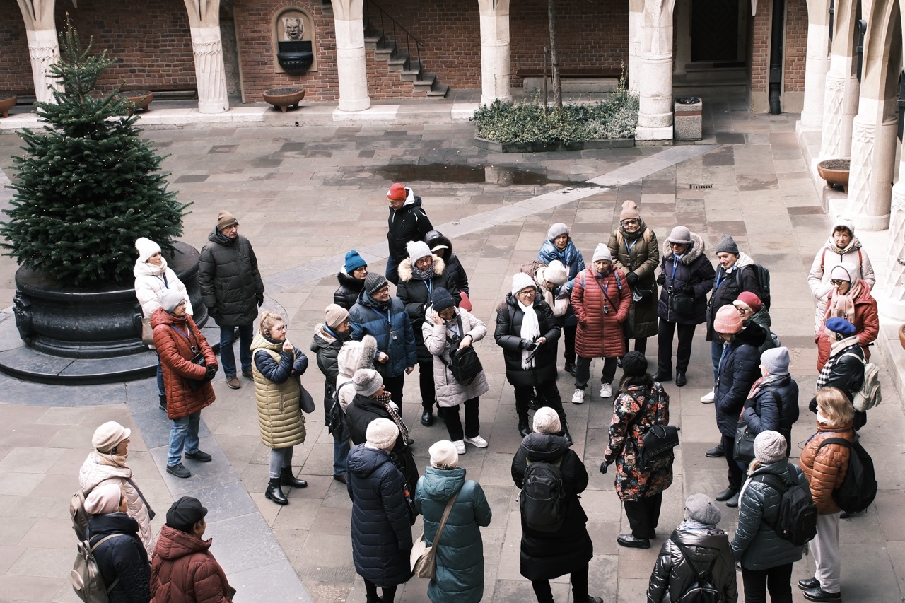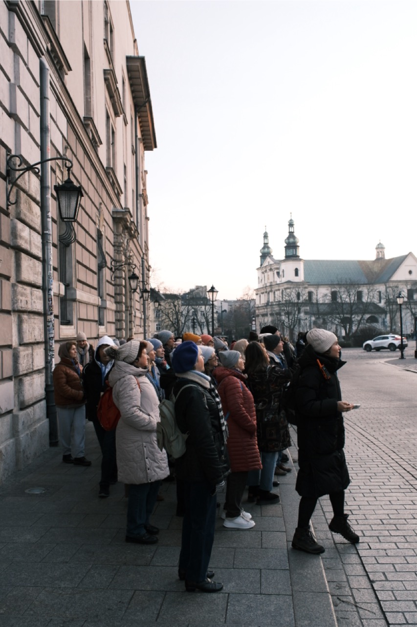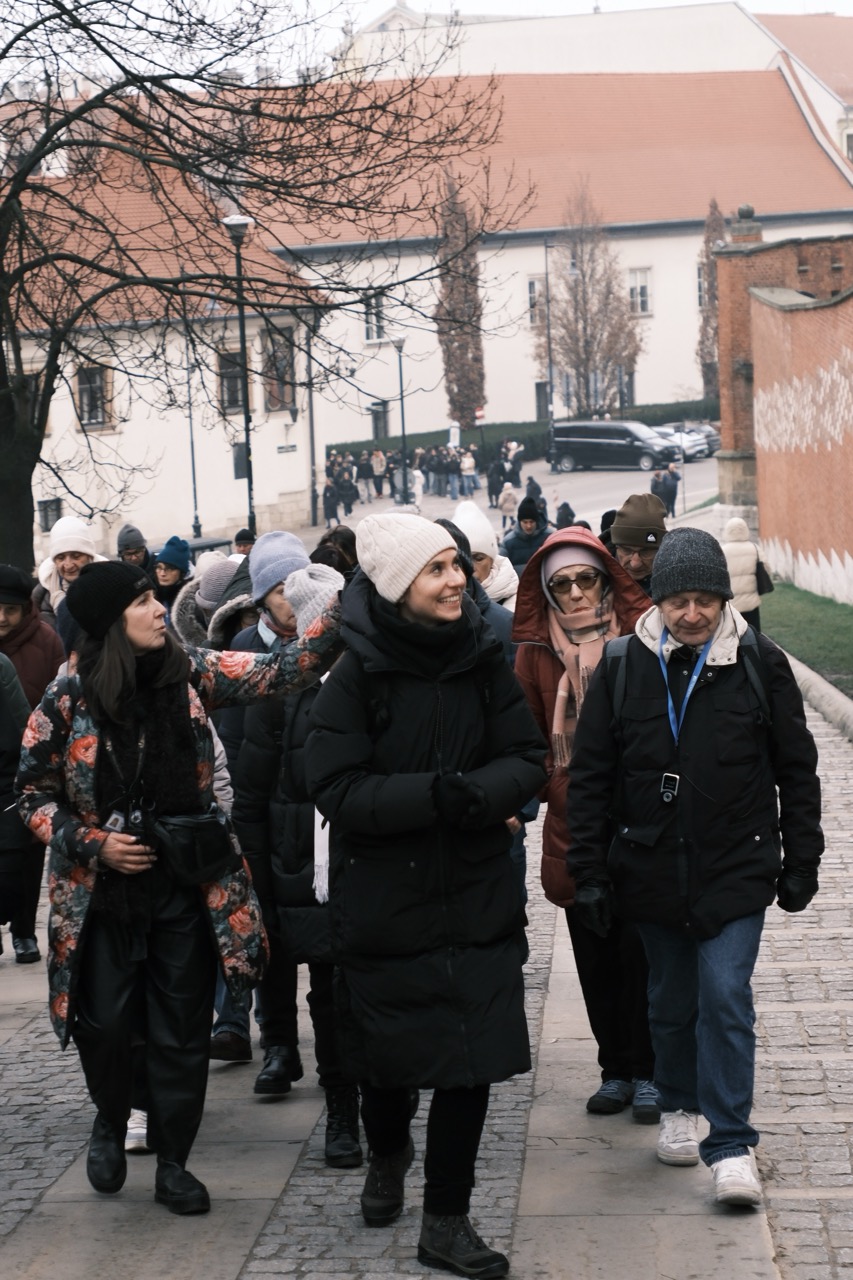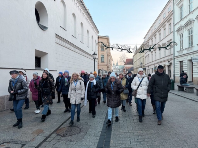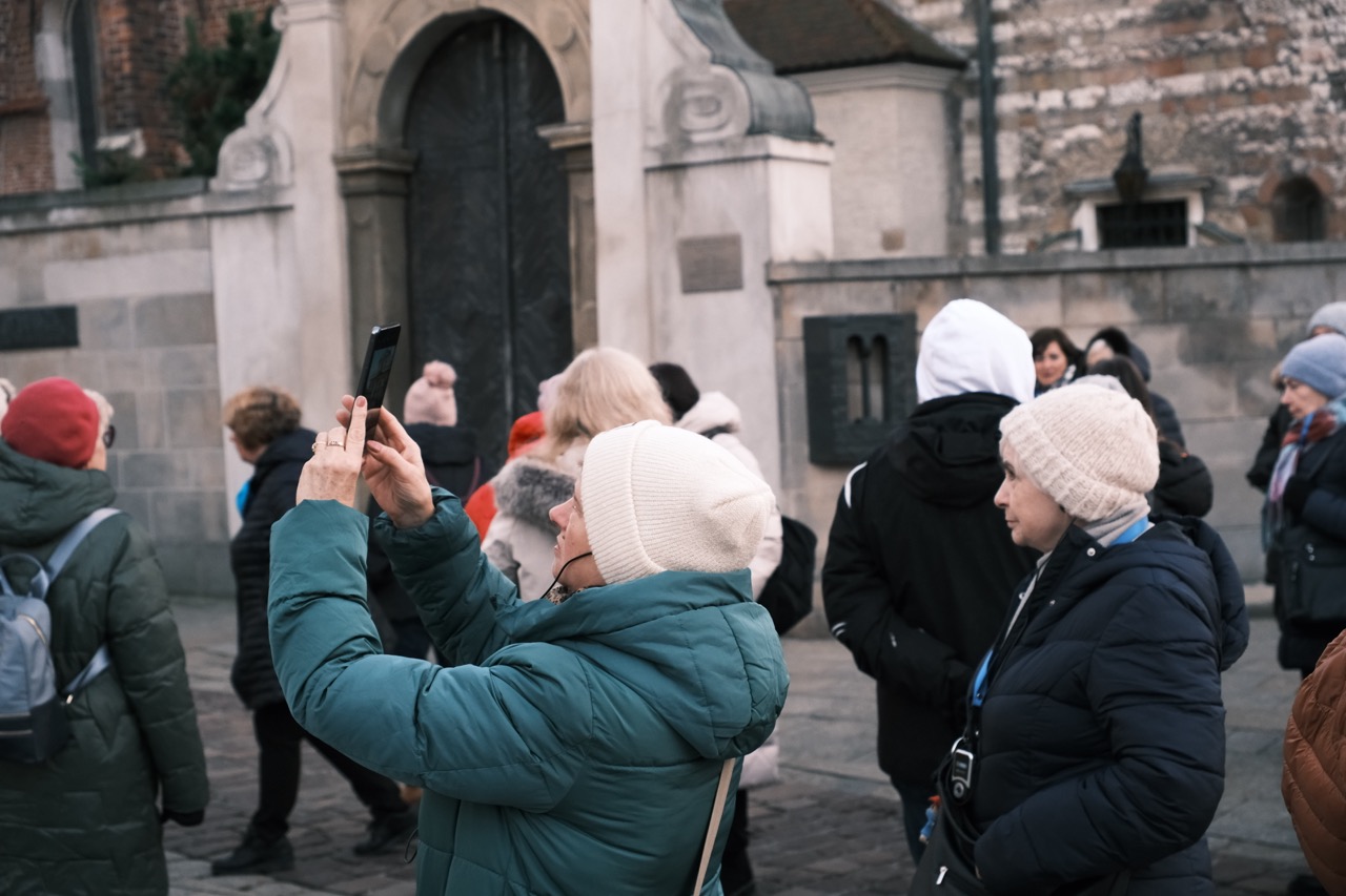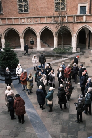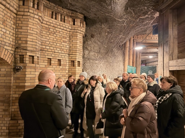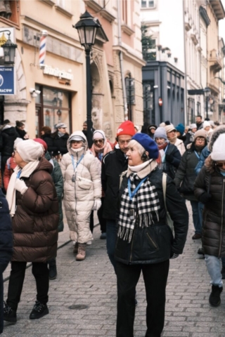 Zwiedziliśmy urokliwą Dzielnicę Żydowską (Kazimierz), gdzie spacer po brukowanych uliczkach z synagogą i cmentarzem Remuh przeniósł nas w świat dawnych tradycji – cisza, kamienne macewy i echo historii dodawały mistycznej głębi. Potem serce Krakowa: Brama Floriańska i Rynek Główny, największy średniowieczny plac Europy, udekorowany choinkami i straganami z rękodziełem! W Katedrze Mariackiej zachwycaliśmy się ołtarzem Wita Stwosza – arcydziełem gotyku! Byliśmy świadkami uroczystego otwarcia tryptyku. Z kolei o 12.00 z wieży Mariackiej wysłuchaliśmy hejnału, który rozbrzmiewa jak wołanie aniołów nad miastem. Odwiedziliśmy także Collegium Maius, najstarszy uniwersytet w Polsce, gdzie podziwialiśmy genialny, ruchomy zegar astronomiczny Jagielloński – tykający skarb średniowiecznej nauki.
