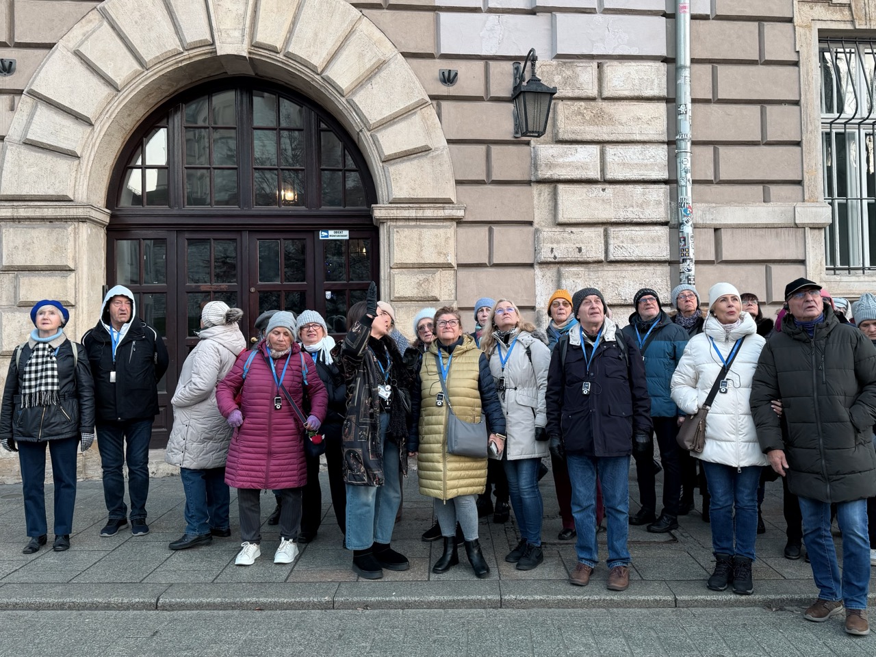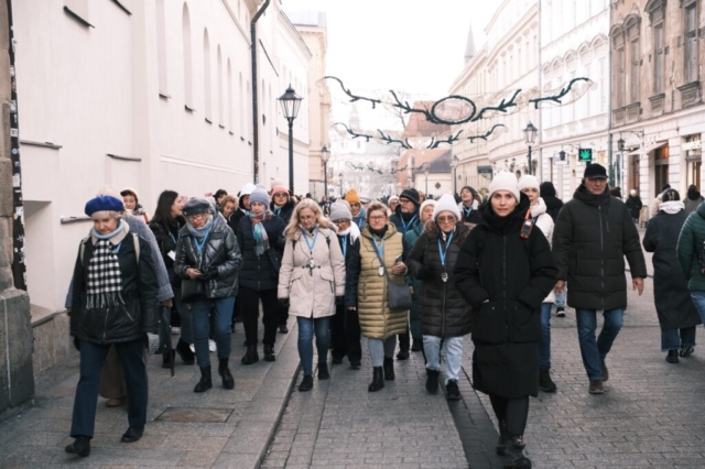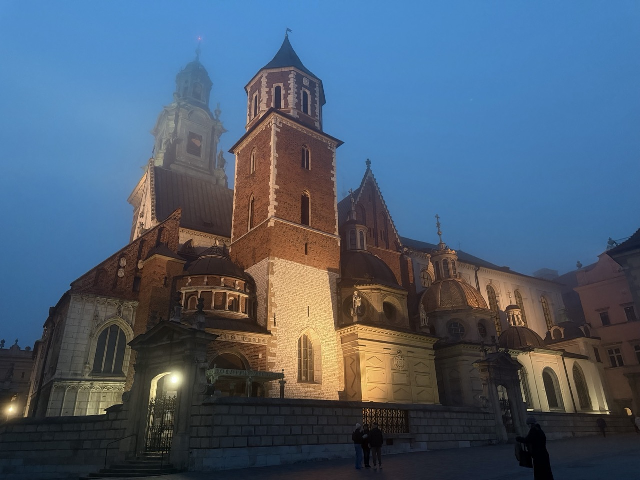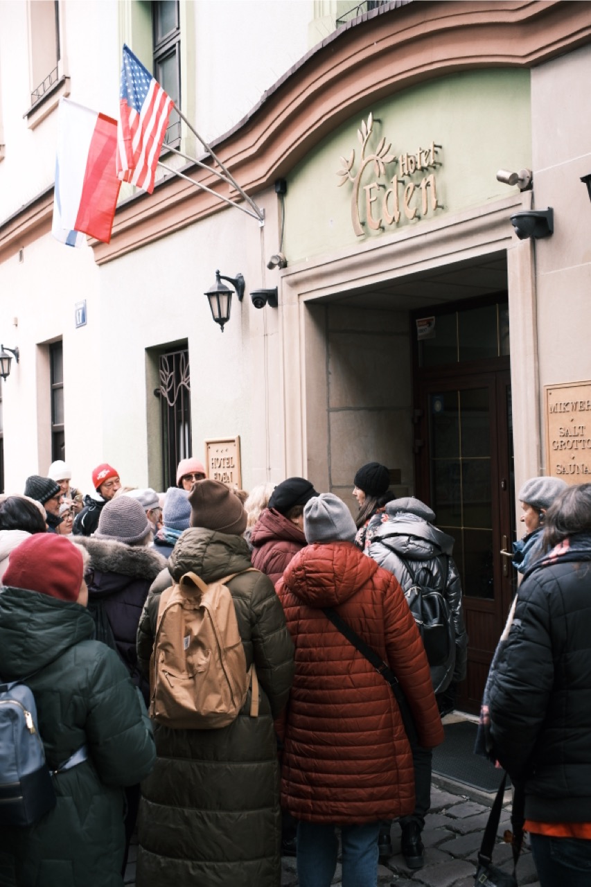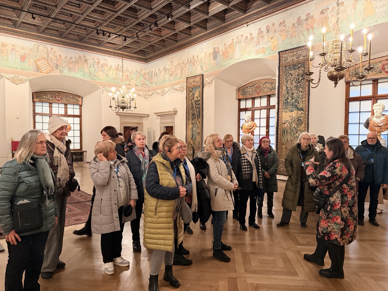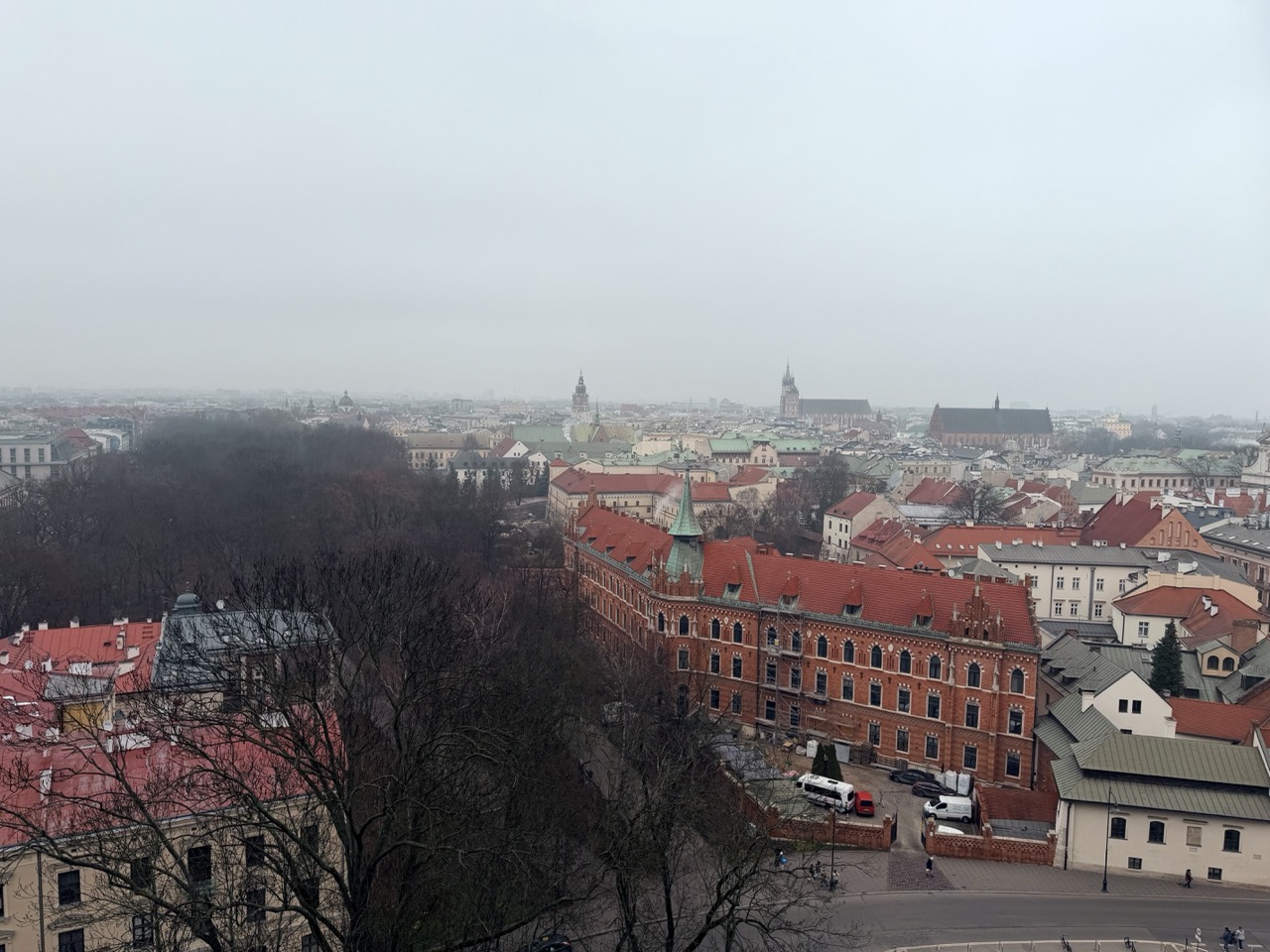 Zwiedziliśmy urokliwą Dzielnicę Żydowską (Kazimierz), gdzie spacer po brukowanych uliczkach z synagogą i cmentarzem Remuh przeniósł nas w świat dawnych tradycji – cisza, kamienne macewy i echo historii dodawały mistycznej głębi. Potem serce Krakowa: Brama Floriańska i Rynek Główny, największy średniowieczny plac Europy, udekorowany choinkami i straganami z rękodziełem! W Katedrze Mariackiej zachwycaliśmy się ołtarzem Wita Stwosza – arcydziełem gotyku! Byliśmy świadkami uroczystego otwarcia tryptyku. Z kolei o 12.00 z wieży Mariackiej wysłuchaliśmy hejnału, który rozbrzmiewa jak wołanie aniołów nad miastem. Odwiedziliśmy także Collegium Maius, najstarszy uniwersytet w Polsce, gdzie podziwialiśmy genialny, ruchomy zegar astronomiczny Jagielloński – tykający skarb średniowiecznej nauki.