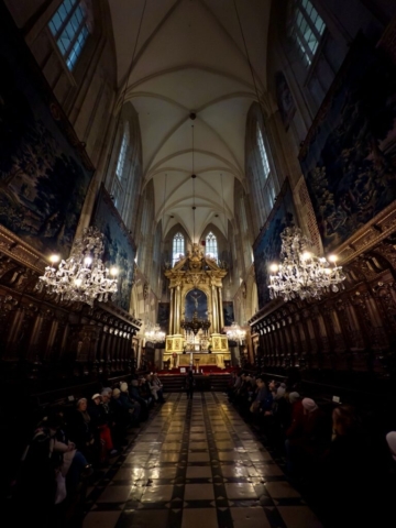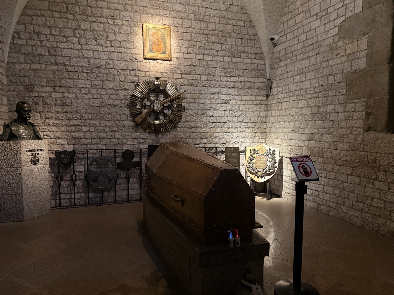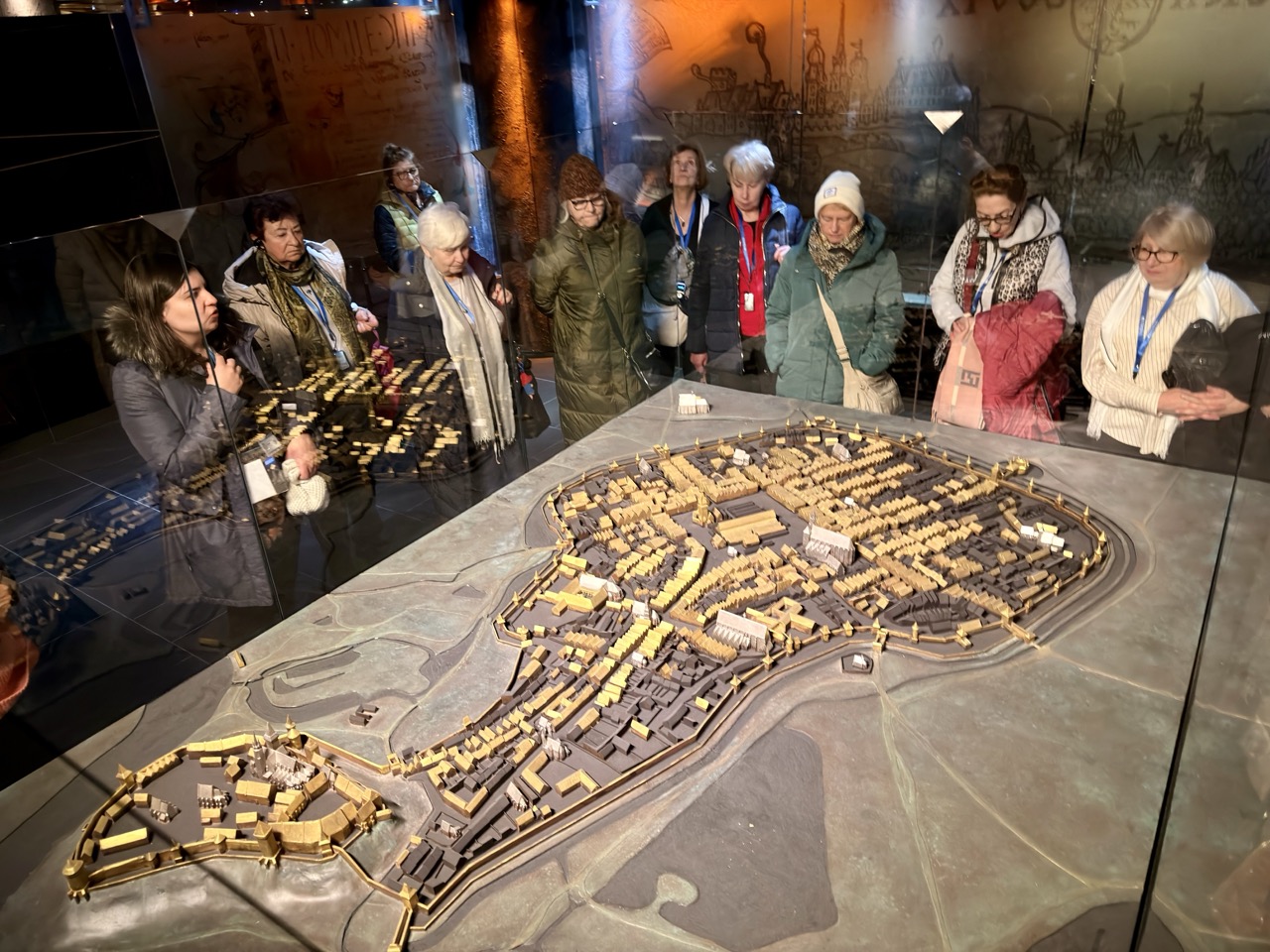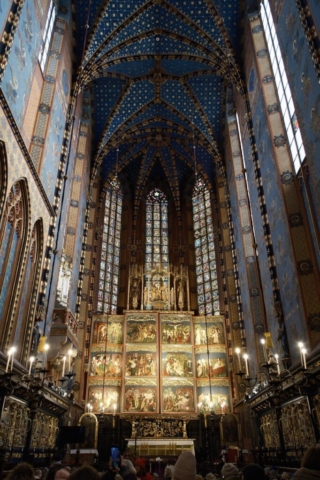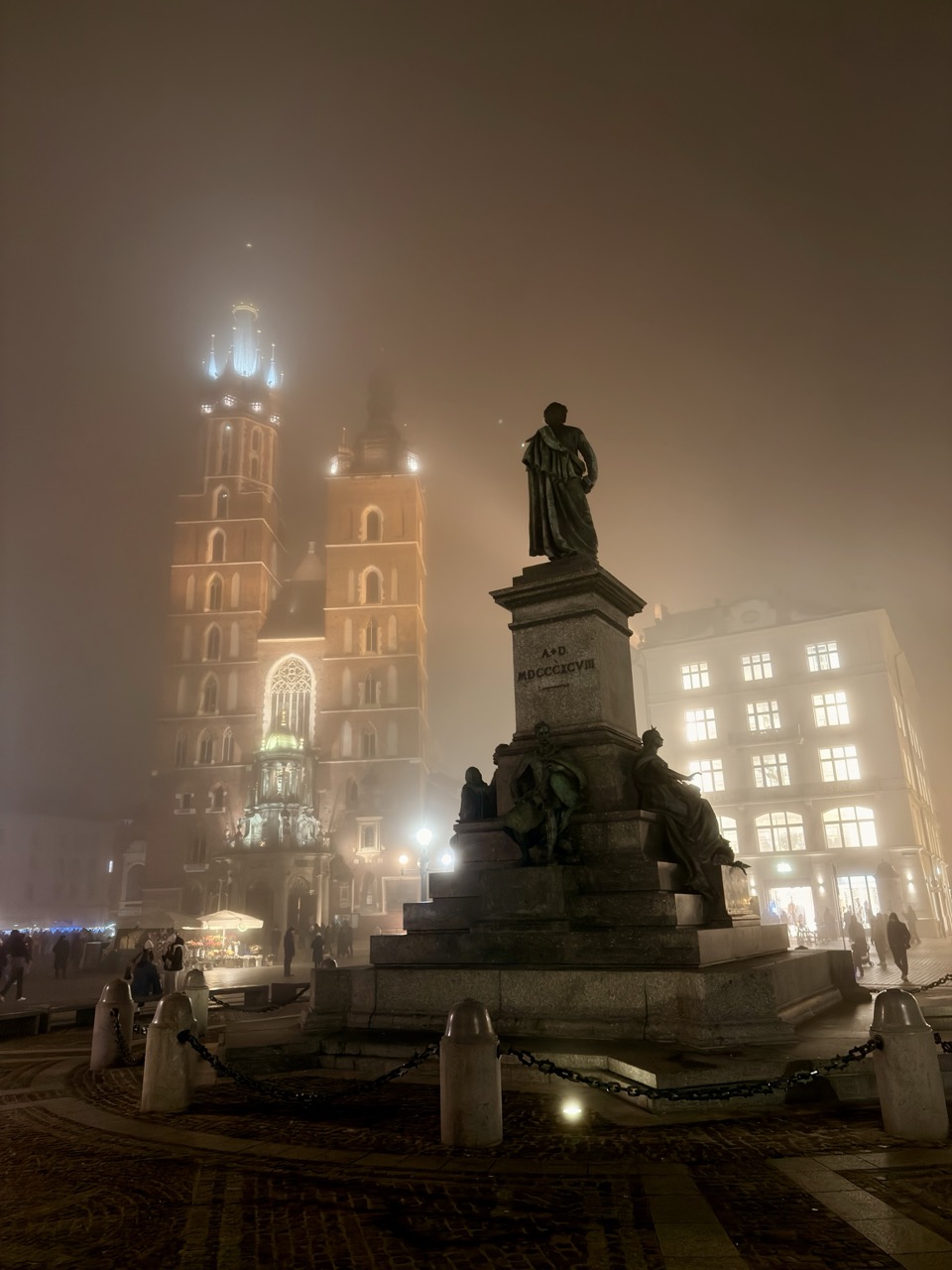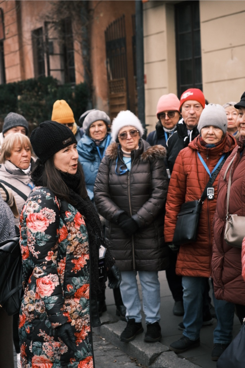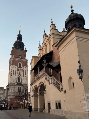 Zwiedziliśmy urokliwą Dzielnicę Żydowską (Kazimierz), gdzie spacer po brukowanych uliczkach z synagogą i cmentarzem Remuh przeniósł nas w świat dawnych tradycji – cisza, kamienne macewy i echo historii dodawały mistycznej głębi. Potem serce Krakowa: Brama Floriańska i Rynek Główny, największy średniowieczny plac Europy, udekorowany choinkami i straganami z rękodziełem! W Katedrze Mariackiej zachwycaliśmy się ołtarzem Wita Stwosza – arcydziełem gotyku! Byliśmy świadkami uroczystego otwarcia tryptyku. Z kolei o 12.00 z wieży Mariackiej wysłuchaliśmy hejnału, który rozbrzmiewa jak wołanie aniołów nad miastem. Odwiedziliśmy także Collegium Maius, najstarszy uniwersytet w Polsce, gdzie podziwialiśmy genialny, ruchomy zegar astronomiczny Jagielloński – tykający skarb średniowiecznej nauki.