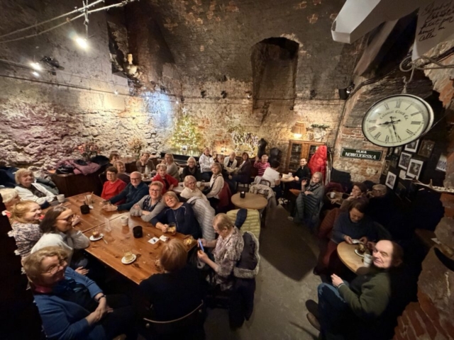 • Słynna Piwnica pod Baranami w której raczyliśmy się aromatycznym grzańcem z goździkami i pomarańczami, a potem usłyszeliśmy wyjątkowy recital specjalnie dla naszej grupy. W zespole zagrał między innymi Kondrat Malik, legenda krakowskiej bohemy, który grywał z samym Markiem Grechutą. To była istna uczta dla serca! Utwory były związane z artystami Piwnicy pod Baranami,